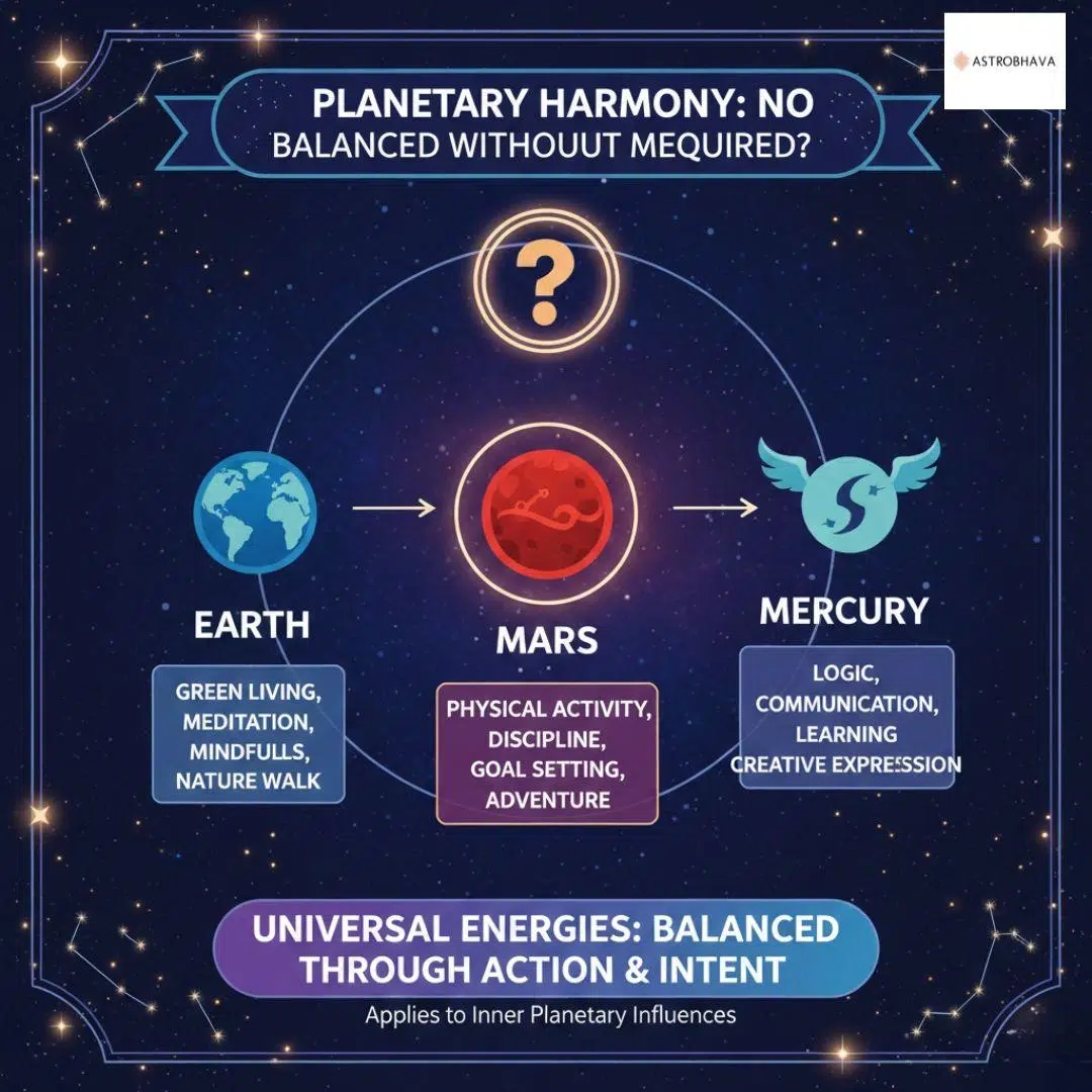 Regular physical activity supports Mars, while planned schedules please Saturn through discipline. Peaceful evenings, limited screen time, and proper sleep enhance Mercury’s clarity. Consistent routines create harmony, reduce planetary disturbances, and gradually improve mental, emotional, and karmic balance naturally.