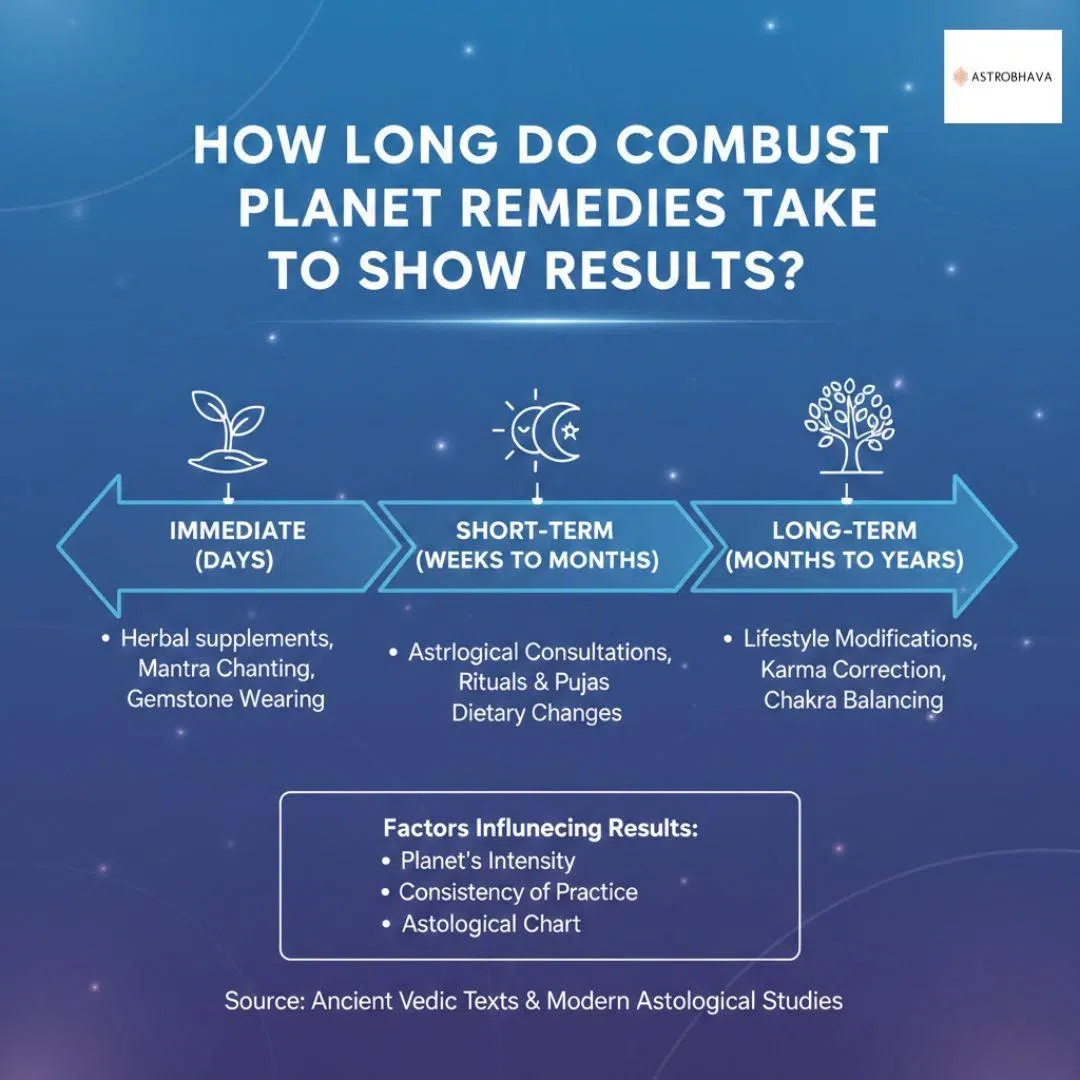 - Transit and dasha periods decide when combust planet remedies give faster or slower results.