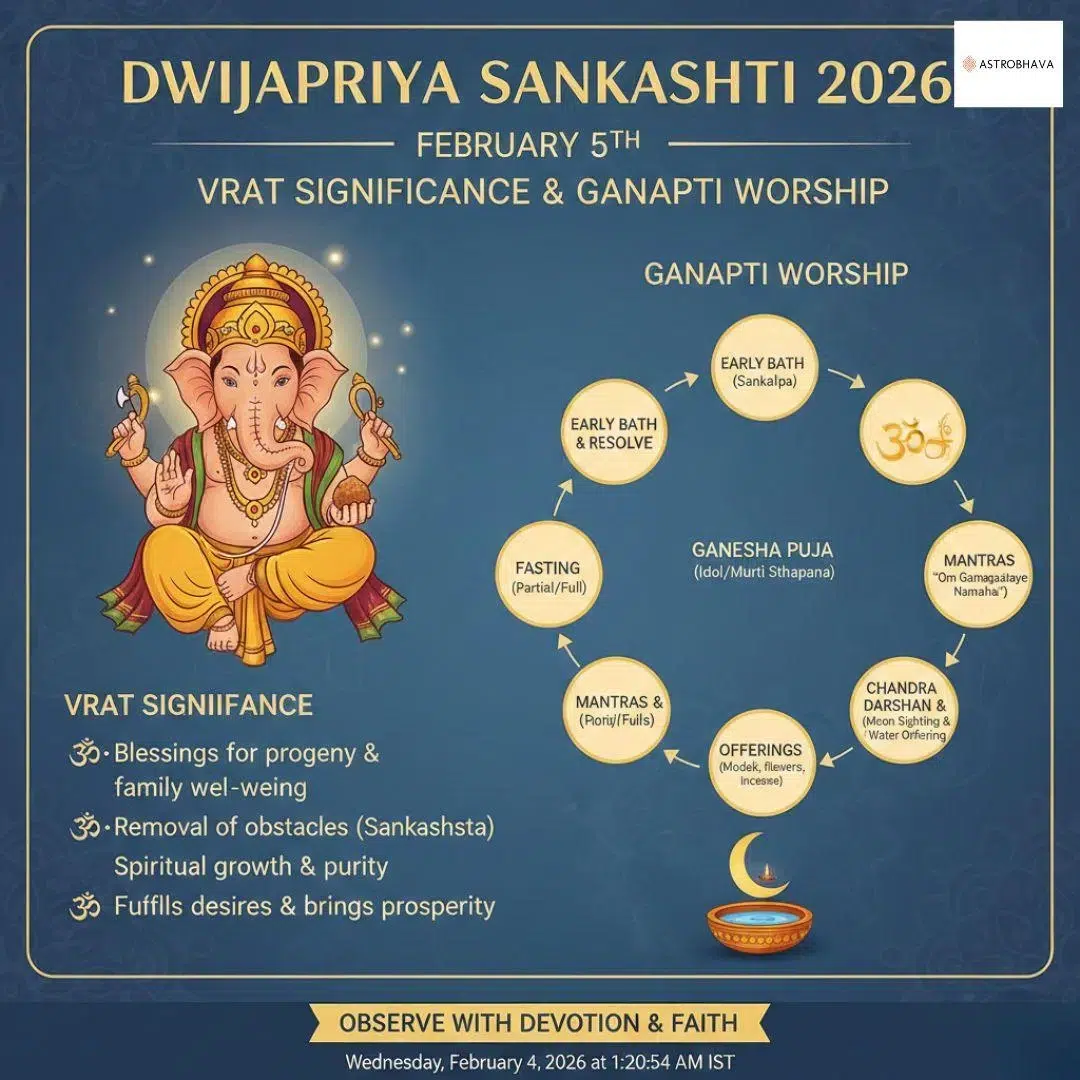 The occurrence of Dwijapriya Sankashti 2026 on February 5th marks a significant spiritual junction in the Vedic lunar calendar. Falling during the Krishna Paksha (waning phase) of the Magha month, this specific Sankashti Chaturthi is dedicated to Dwijapriya Ganesha, the 6th of the 32 forms of Lord Ganapati. In Vedic astrology, this day is highly regarded for its ability to mitigate the harsh effects of planetary transits and provide a “Sankashti” (deliverance from difficulties) to those navigating complex life cycles.