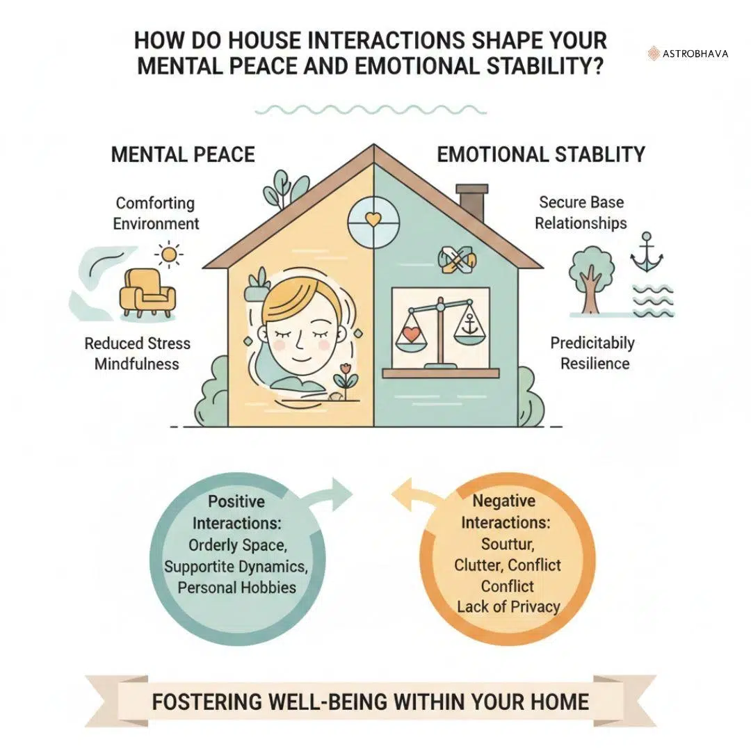 - Balanced interaction among these houses ensures calmness, emotional clarity, and long-term mental stability.
