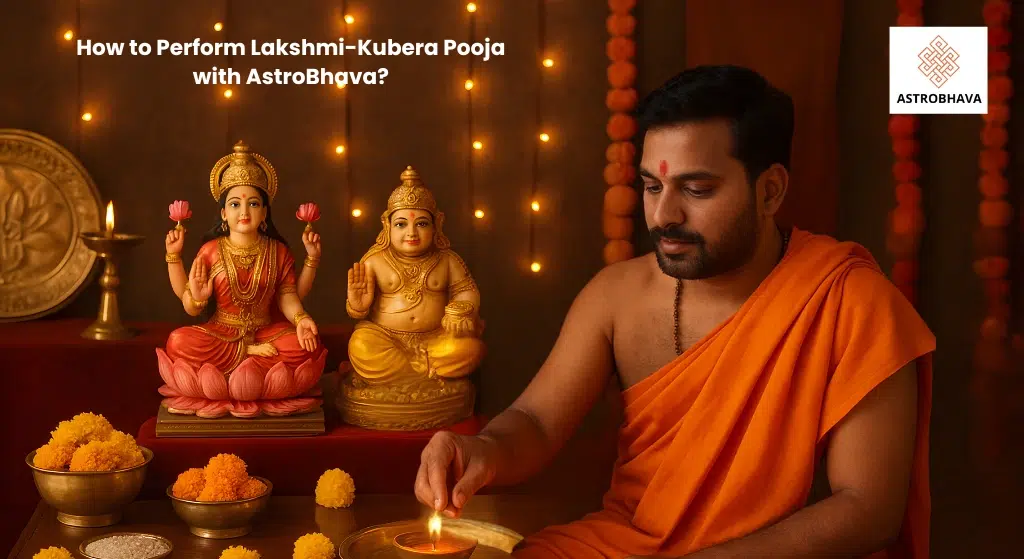 In this blog, you’ll learn how to perform Lakshmi-Kubera Pooja on Diwali, the story behind Lakshmi Kubera Pooja, and how you can perform this powerful ritual with AstroBhava’s guided remedies for maximum benefits.