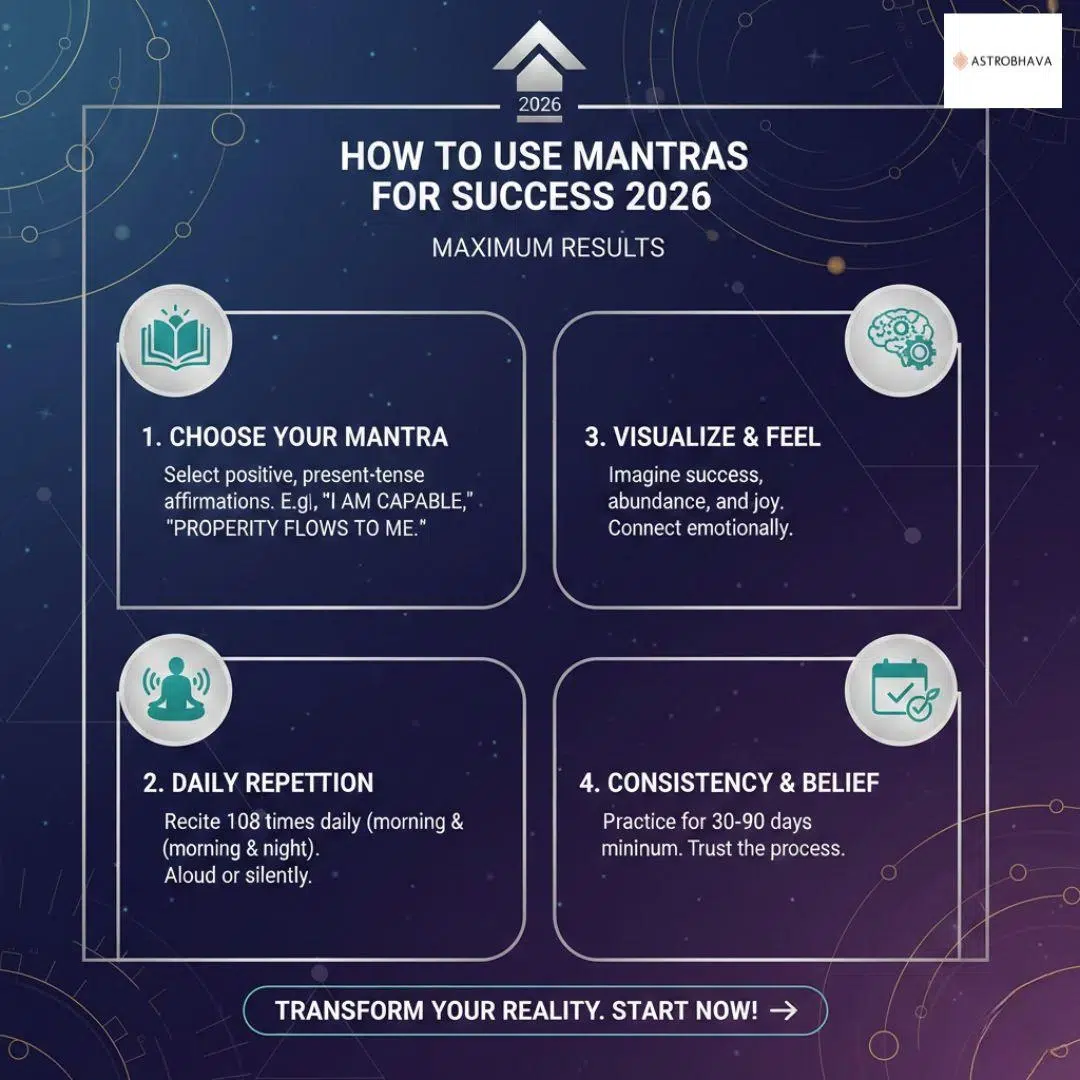 Below are the most recommended mantras for success 2026 for financial growth, career advancement, business expansion, academic success, and personal empowerment.