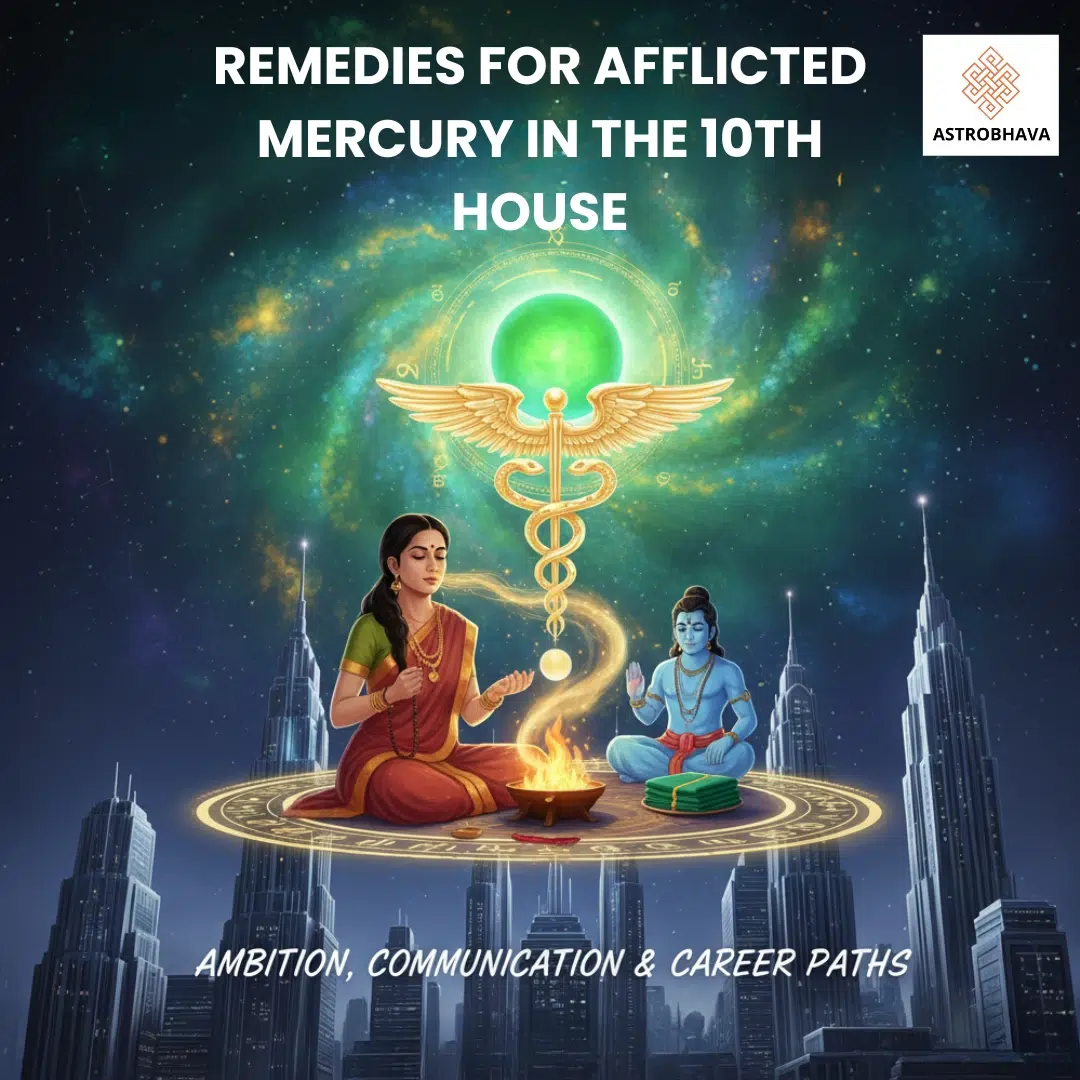 When Mercury in the 10th house is weak, retrograde, or under malefic influence (like Saturn, Rahu, or Mars), it may cause professional instability, miscommunication at work, and delays in recognition. To strengthen Mercury and balance its energy, Vedic astrology suggests a mix of mantras, pujas, donations, and lifestyle adjustments.