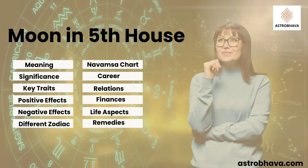 In this comprehensive guide, we’ll explore the meaning, significance, effects, remedies, and Navamsa interpretation of Moon in 5th House. You’ll also learn how this placement influences different aspects of life such as love, career, children, and spirituality.