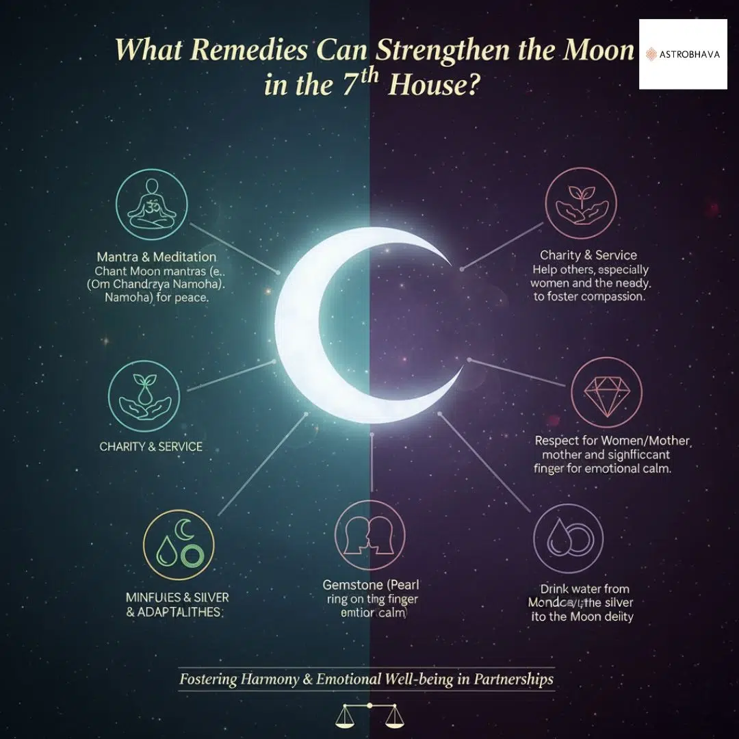 These remedies help balance emotions and promote positive relationships linked to the Moon in 7th house.