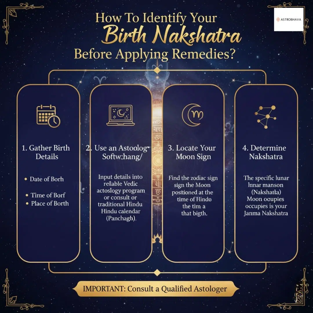 Knowing your exact Nakshatra is the foundation of effective remedy application. To identify it: