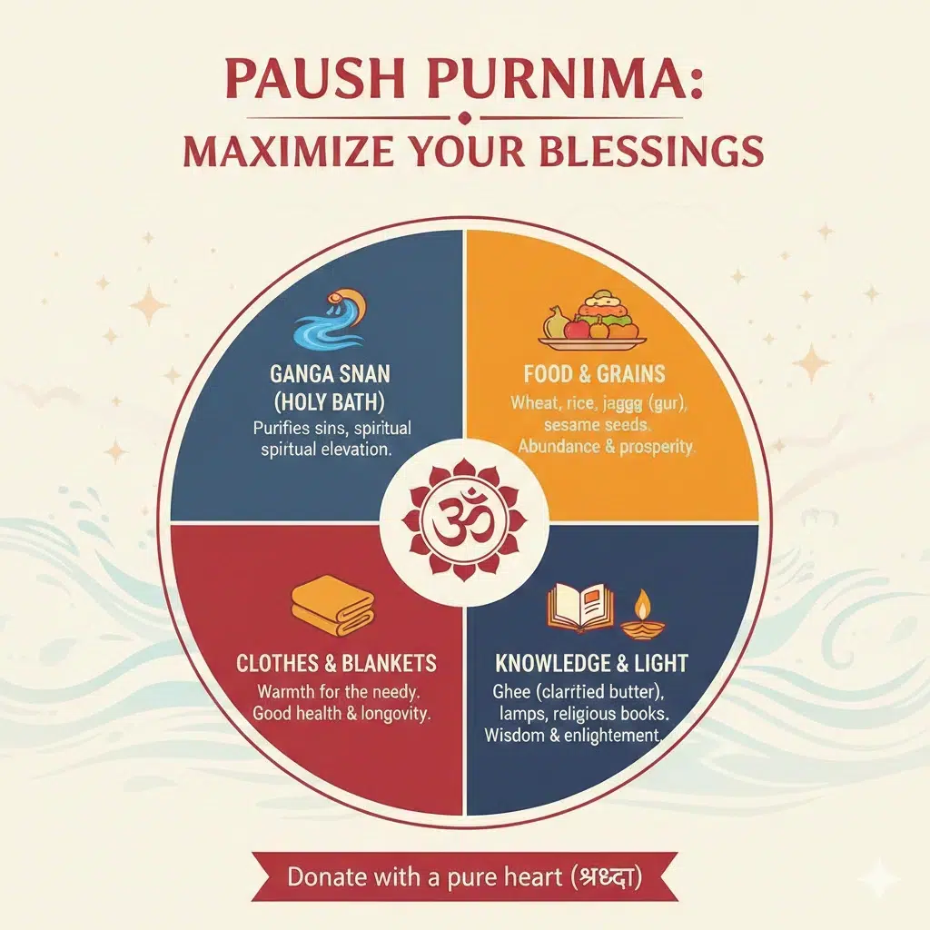 Scriptures mention Paush Purnima as a Moksha Dwaar—a doorway to liberation.