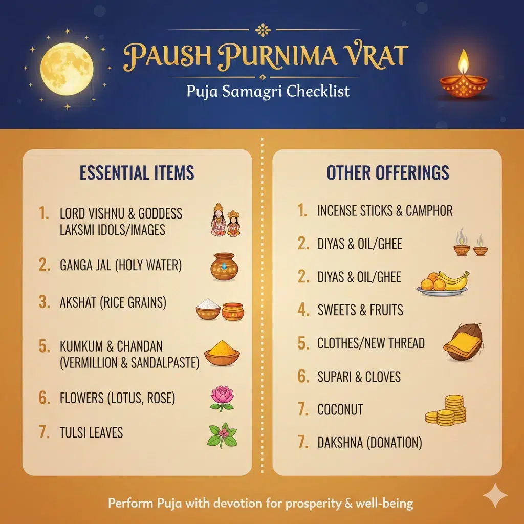 Which Puja Samagri Is Required for Paush Purnima Vrat?