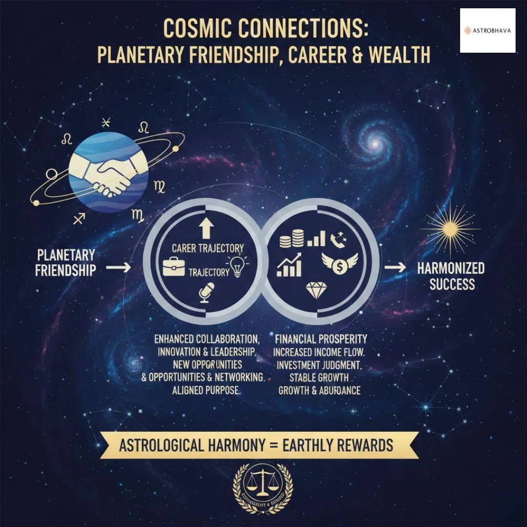 For example, Saturn and Mercury friendships support careers in finance, analytics, and law. Planetary friendship astrology explains why some professions feel effortless while others feel forced.