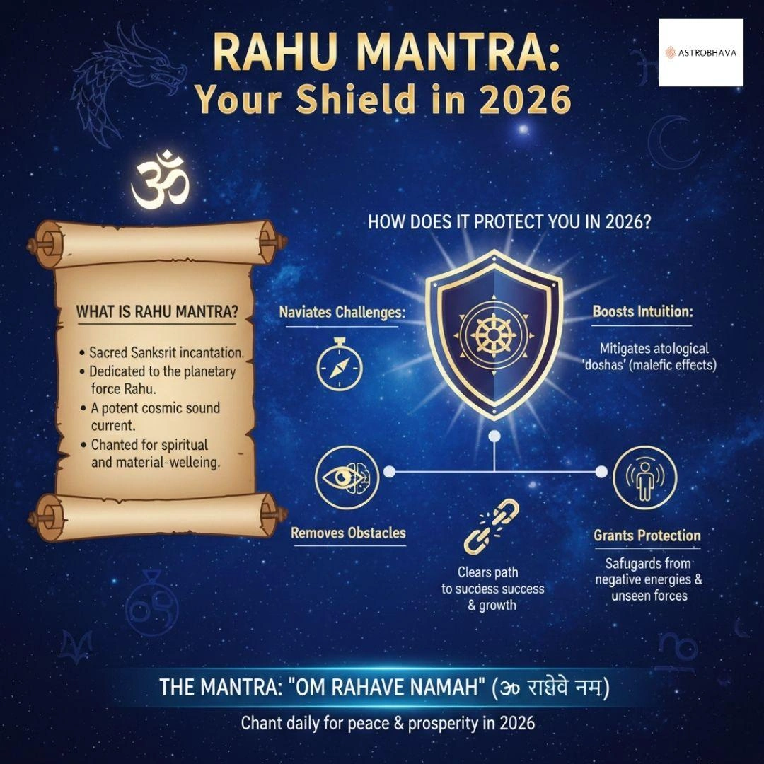 Unlock protection, peace, and prosperity in 2026! Start chanting Rahu Mantra 2026 with Astrobhava today and shield yourself from negativity, hidden enemies, and obstacles while attracting success and positivity.