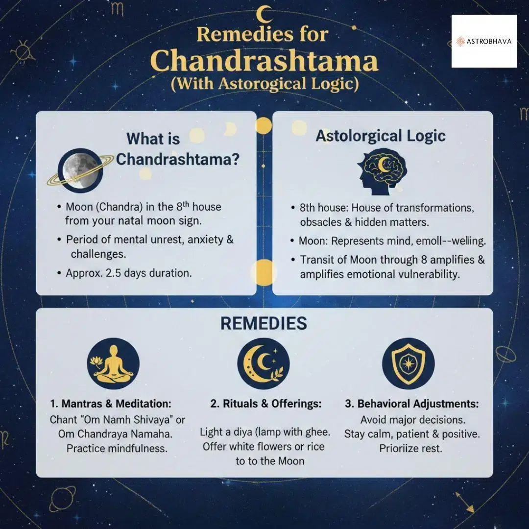 - This is why remedies for chandrashtama focus on calming the mind, not forcing action.