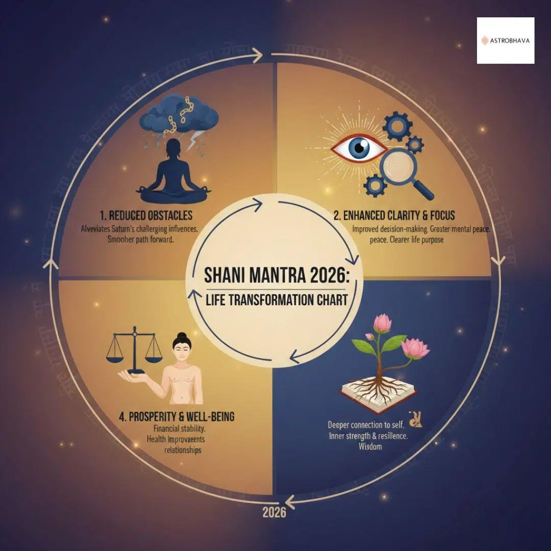With consistency, this mantra helps you overcome challenges and move confidently towards growth and clarity in 2026. Unlock the power of Shani Mantra 2026 with personalized guidance from AstroBhava. Get remedies, chanting methods, and Saturn insights tailored to your horoscope. Start your transformation today for a stable, successful 2026!