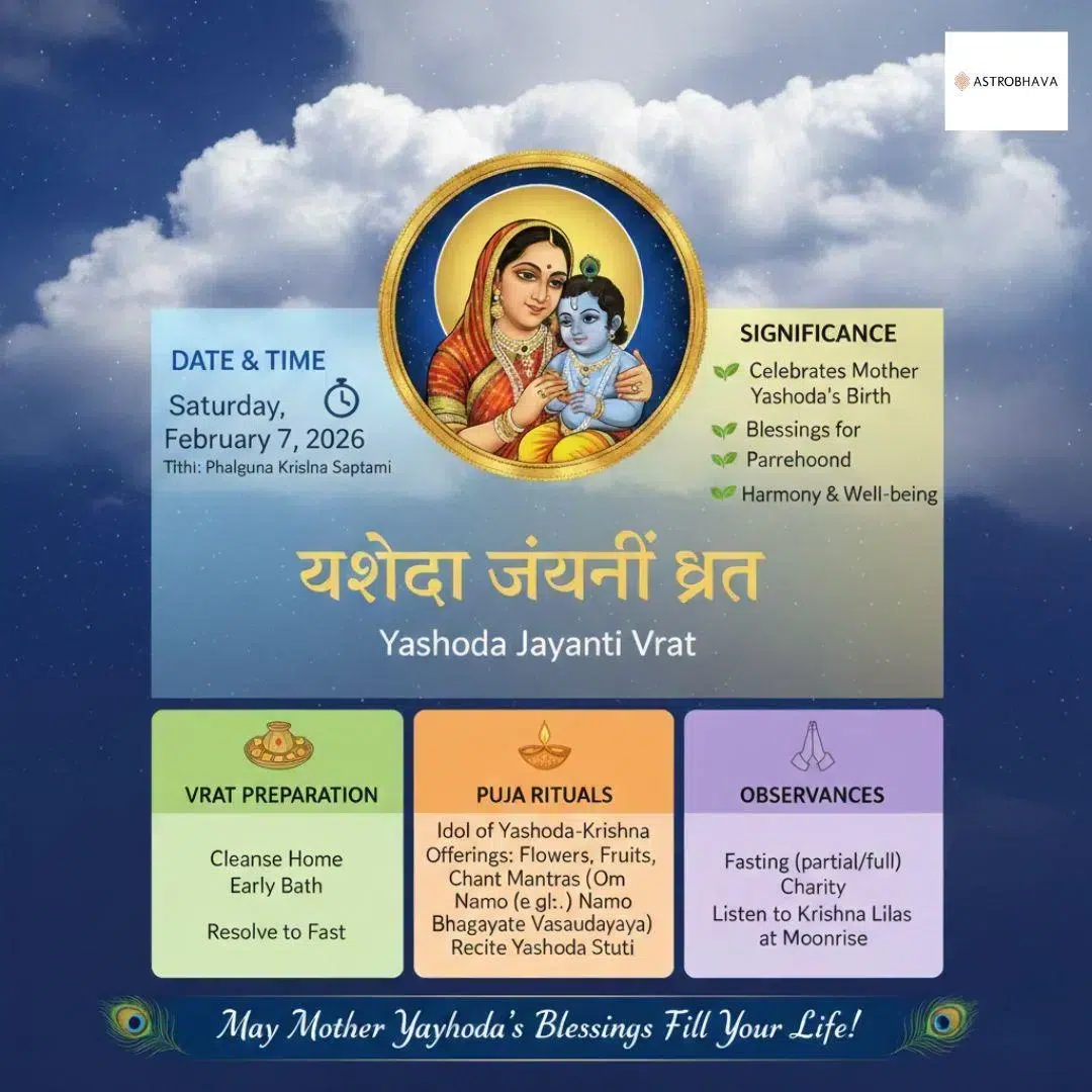 - Yashoda Jayanti 2026 falls on 7 February 2026