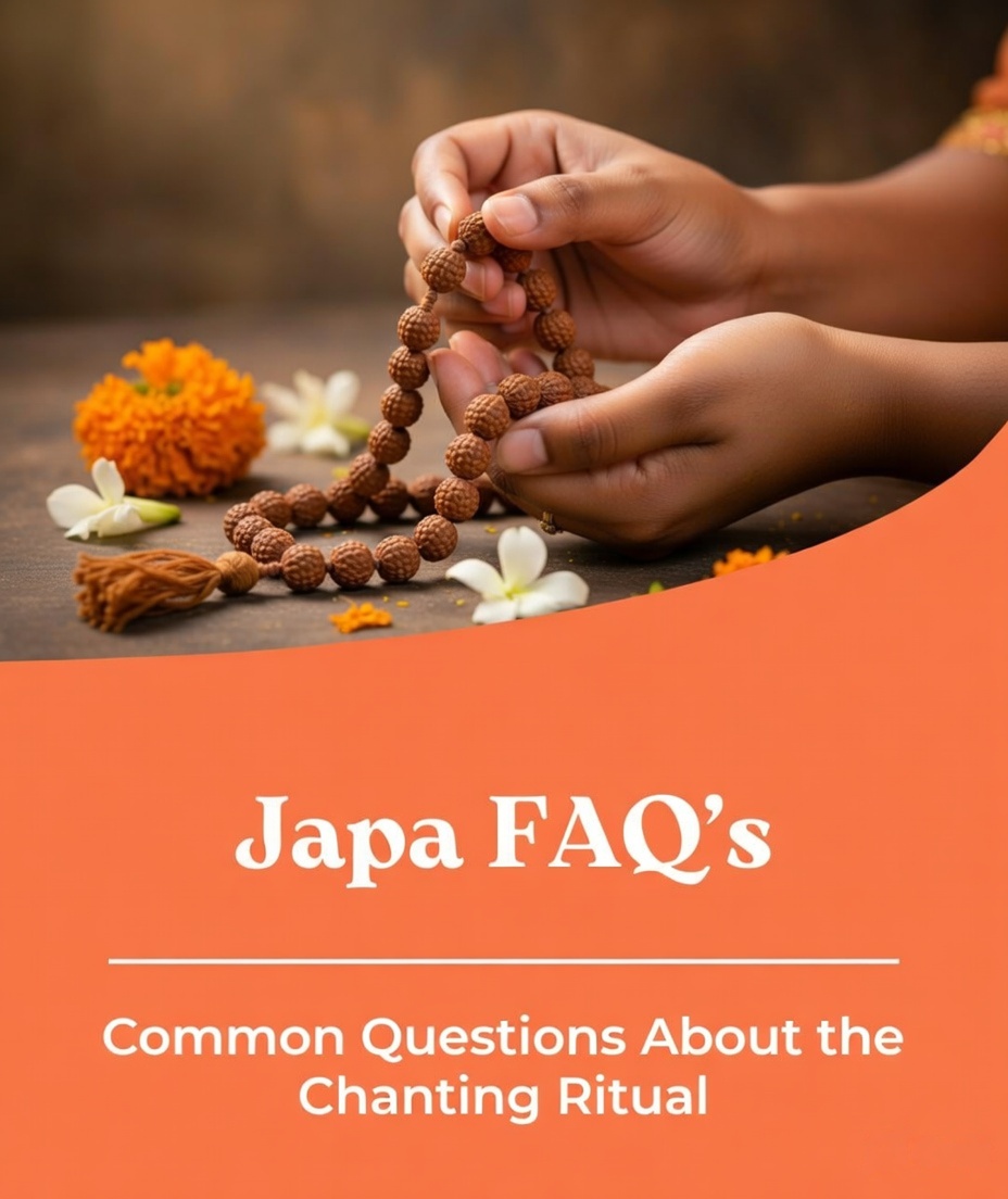 AstroBhava’s Online Japa FAQs provide clear and complete answers to all your questions about personalised virtual Japa and remote mantra chanting services. Learn exactly how Vedic Japa is performed by our experienced priests in the sacred temple, the different chant counts available (1001 to 125,001), the powerful 48-day Mandala Japa, Yantra in silver amulet, Prasad shipping, benefits, booking process, and everything else you need to know. Get full clarity before you book your powerful online Japa.